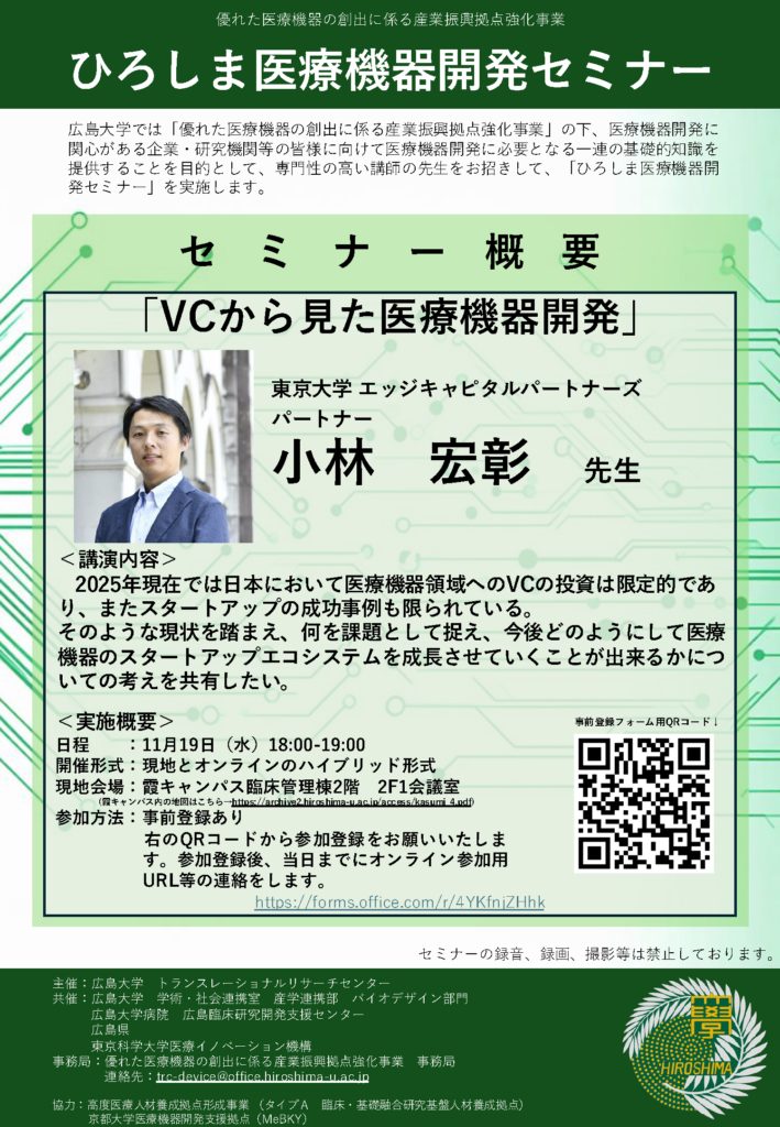 【2025/11/19】 ひろしま医療機器開発セミナー 小林宏彰先生「VCから見た医療機器開発」
